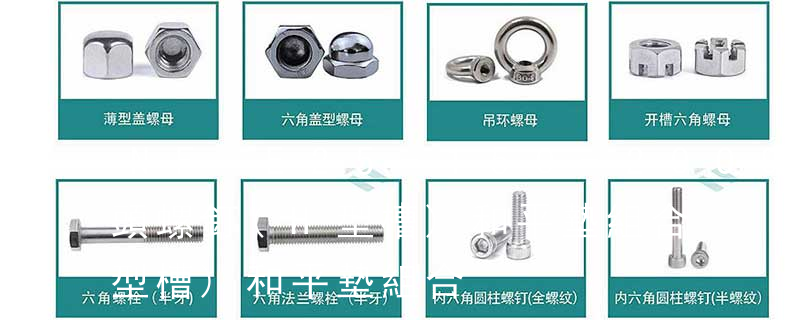 T型槽螺母 T-slot nuts 單頭螺柱 Single end studs 地腳螺栓 Masonry bolts 帶槽圓螺母 Slotted round nuts 端面帶孔圓螺母 Round nuts with drilled holes in one face 開槽平端緊定螺釘 Slotted set screws with flat