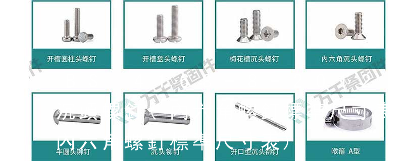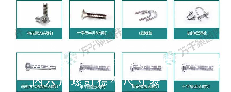 BS 4168《內六角螺釘和板手.米制系列》,我們國家的內六角螺釘和板手的標準是分開的:GB/T 70.1-2008 內六角圓柱頭螺釘 GB/T 70.2-2015 內六角平圓頭螺釘 GB/T 70.3-2008 內六角沉頭螺釘 GB/T 5356-2008 內六 螺栓有:1、方頭螺栓,2、半圓頭方頸螺栓,3、十字槽盤頭螺釘,4、內六角沉頭螺釘,5、方螺母C級,6、蝶形螺母,7、六角頭螺栓,8、十字槽盤頭自攻螺釘。大小有M18、M6、M8、M16、M10、M12、M14、M20等型號。通常用