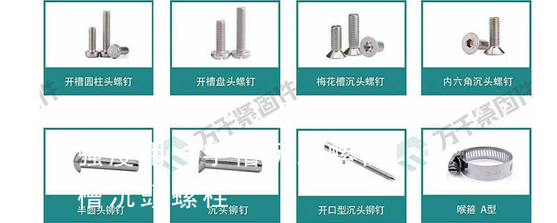 螺栓有:1、方頭螺栓,2、半圓頭方頸螺栓,3、十字槽盤頭螺釘,4、內六角沉頭螺釘,5、方螺母C級,6、蝶形螺母,7、六角頭螺栓,8、十字槽盤頭自攻螺釘。大小有M18、M6、M8、M16、M10、M12、M14、M20等型號。通常用