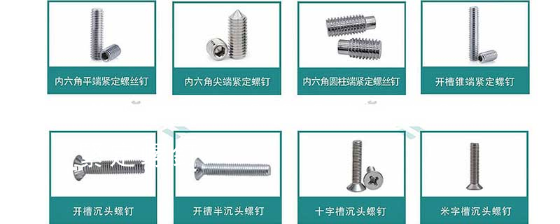 1.開槽錐端緊定螺釘2.開槽平端緊定螺釘3.開槽凹端緊定螺釘4.開槽長圓柱端緊定螺釘5.內六角平端緊定螺釘6.內六角錐端緊定螺釘7.內六角圓柱端緊定螺釘8.內六角凹端緊定螺釘9.方頭長圓柱球面端緊定螺釘10.方頭長圓柱端緊定