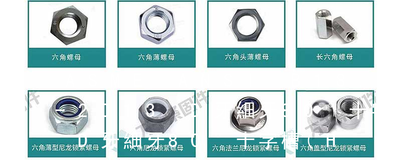 ④ 螺釘牙型 A:自攻尖尾(日標第1種)疏 AB:自攻尖尾(日標第4種)密;B:自攻平尾(日標第2種)疏;C:自攻平尾(日標第3種)密;P:雙絲牙 HL:高低牙 U:菠蘿牙紋;T:自攻平尾切腳 AT:自攻絲尖尾切 標準惠氏細牙系列,一般用途圓柱螺紋 Whit.S 附加的惠氏可選擇系列,一般用途圓柱螺紋 Whit 惠氏牙型的非標準螺紋 UN 恒定螺距系列的同一螺紋 美國標準ANSIB1.1 標準牙型(牙底是平的或隨意倒圓的)的內、外螺紋 UNC 粗牙系列的同一螺紋